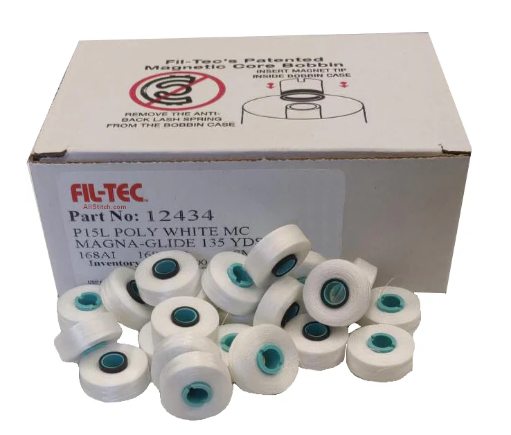 Fil-Tec Magna-Glide Prewound Bobbins deliver consistent tension and smooth stitching with high-quality prewound thread for reliable sewing results. Designed for compatibility with various machine models, these bobbins reduce downtime by providing a ready-to-use solution, enhancing efficiency for professional and serious hobbyist sewists alike. Their smooth glide minimizes thread jams, ensuring precision and durability in every project.